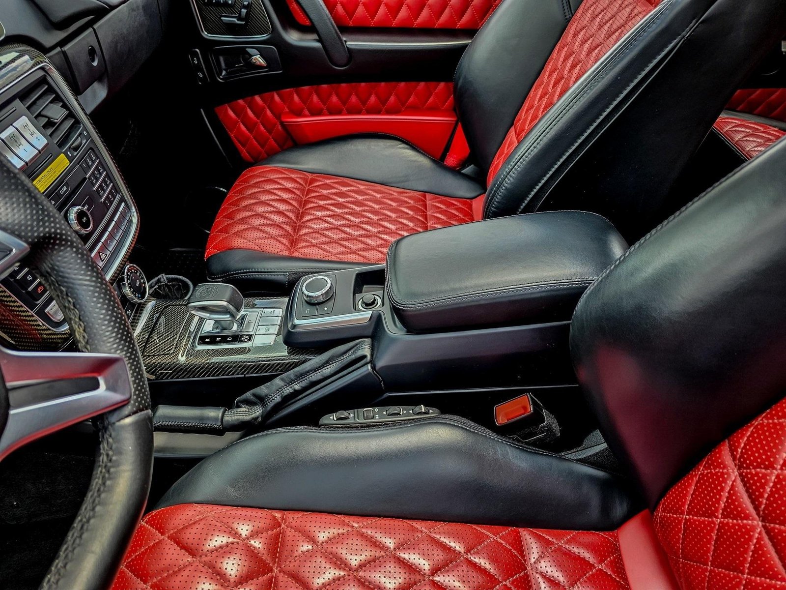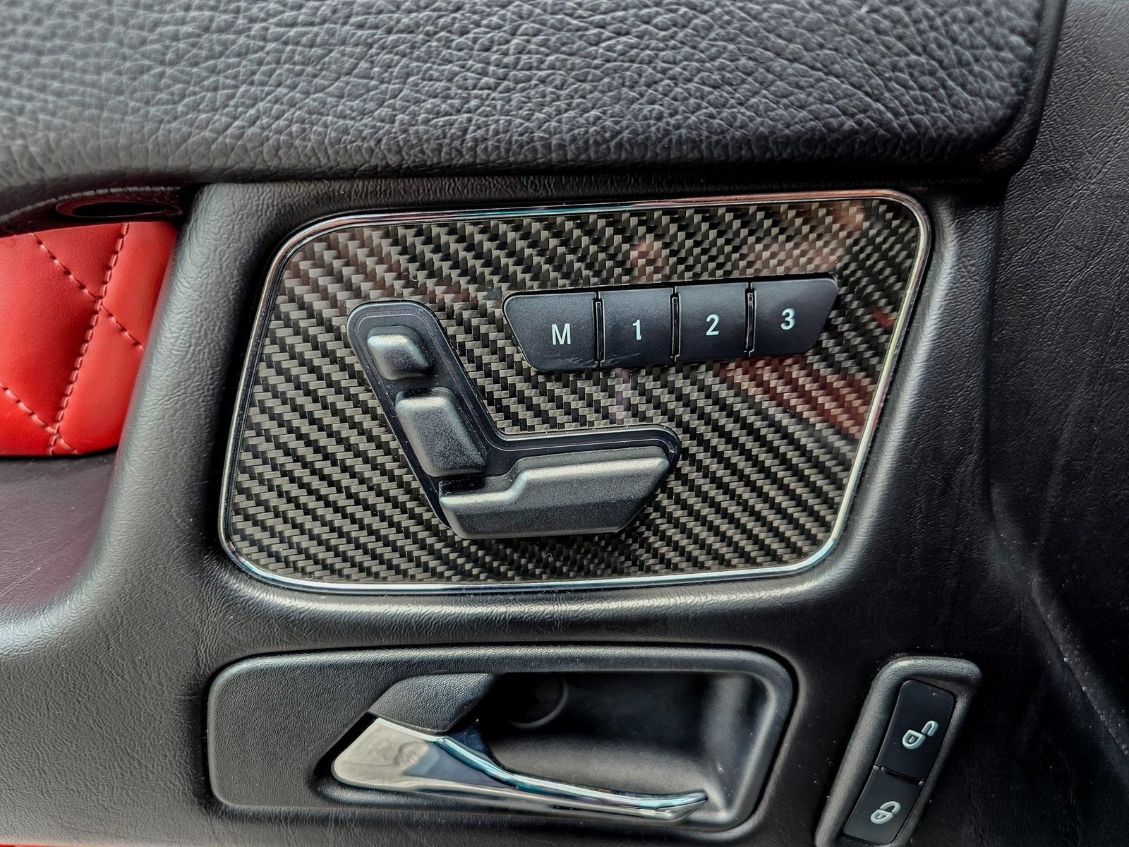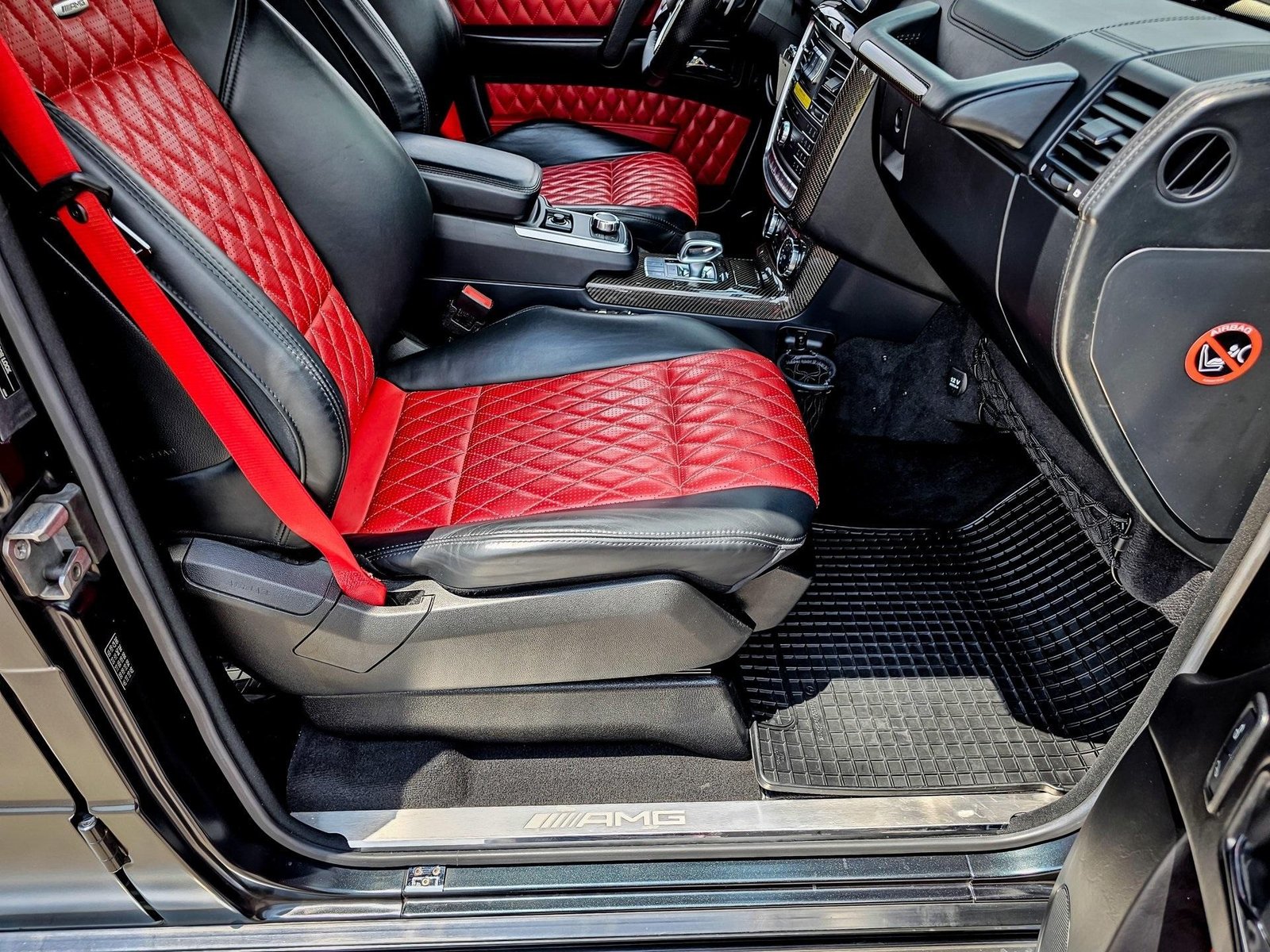 Inside, the cabin delivers a performance-focused yet luxurious environment with AMG sport seats, designo red/black leather upholstery, AMG carbon fiber interior trim, AMG performance steering wheel in Nappa leather, and premium detailing throughout, combining sport heritage with handcrafted luxury.