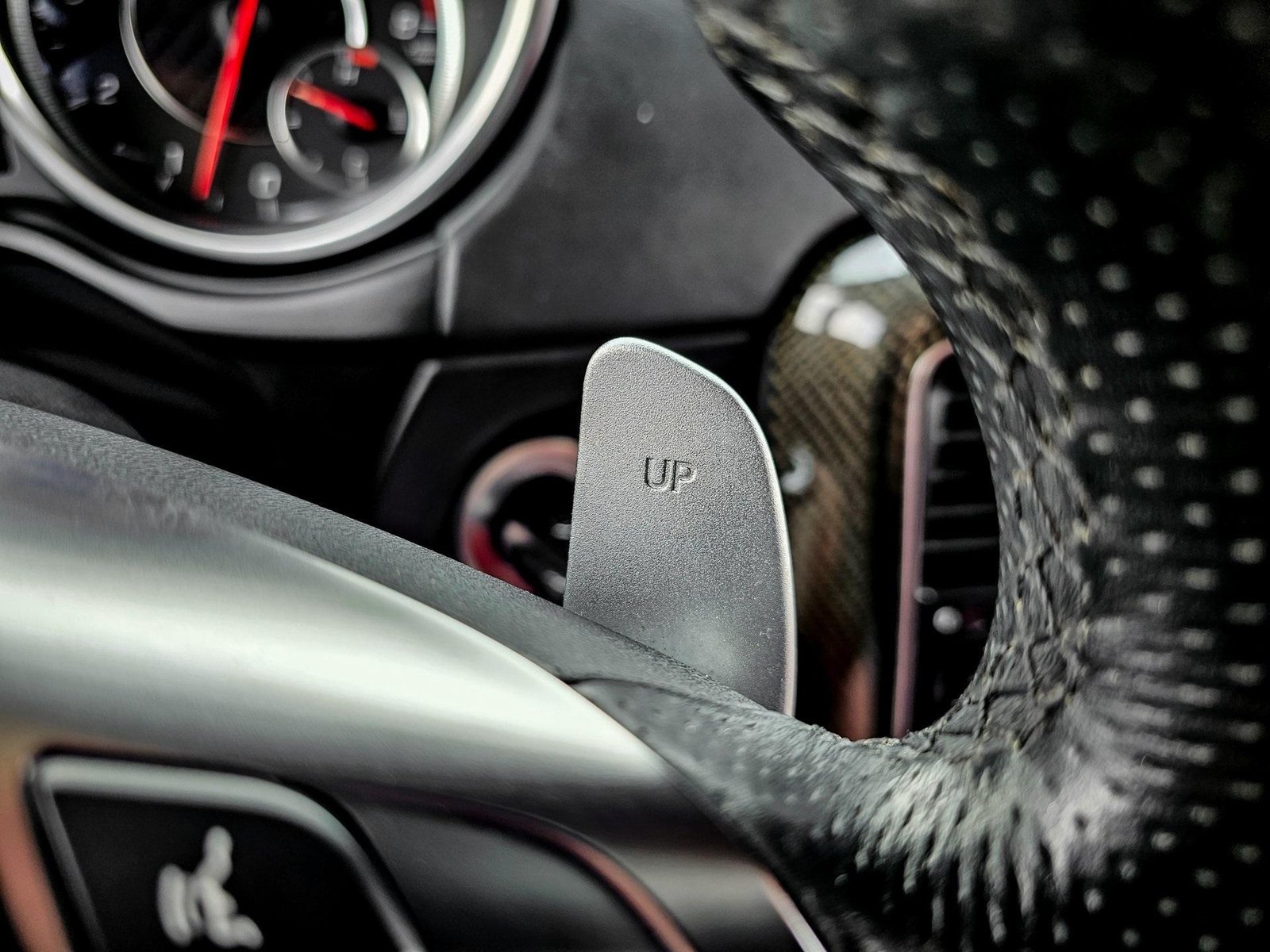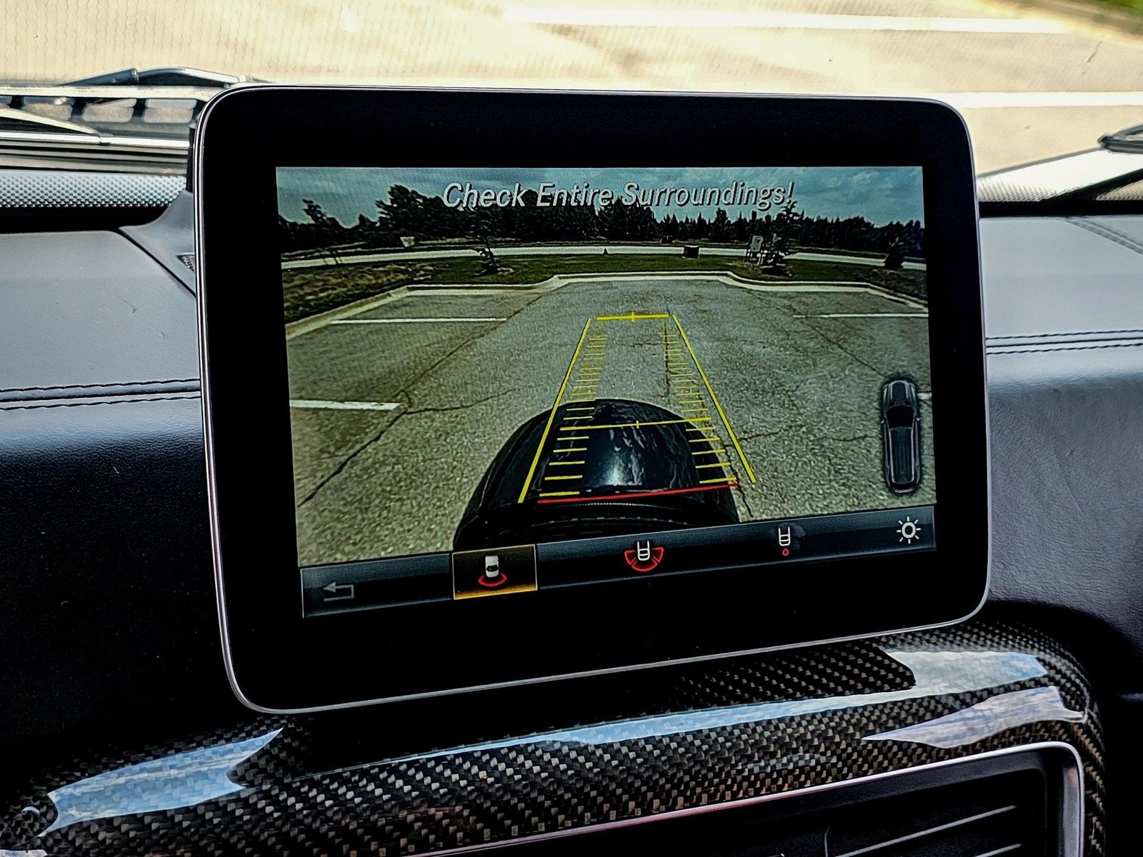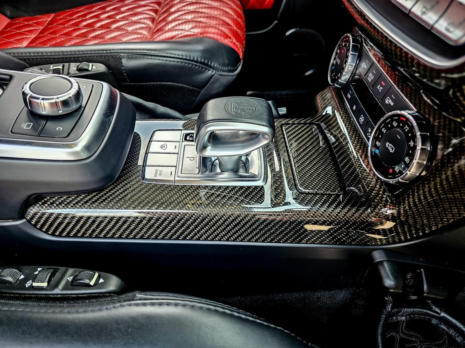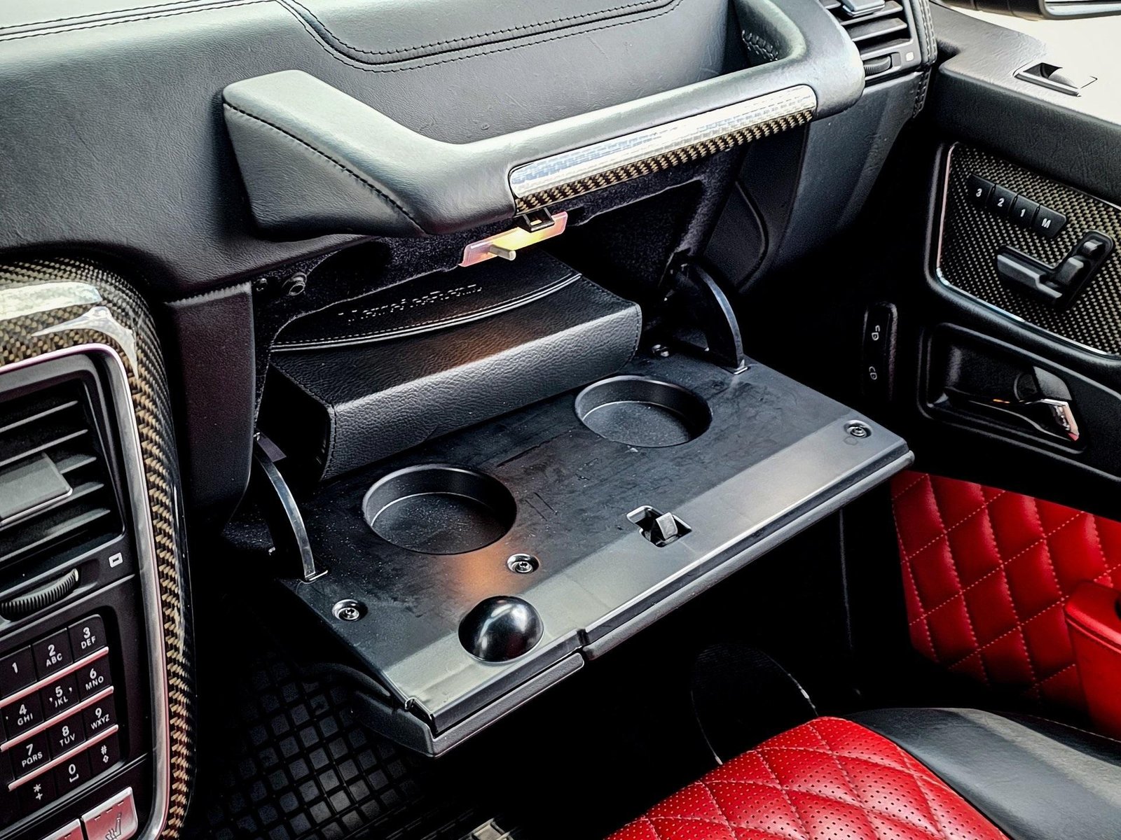 Inside, the cabin delivers a performance-focused yet luxurious environment with AMG sport seats, designo red/black leather upholstery, AMG carbon fiber interior trim, AMG performance steering wheel in Nappa leather, and premium detailing throughout, combining sport heritage with handcrafted luxury.